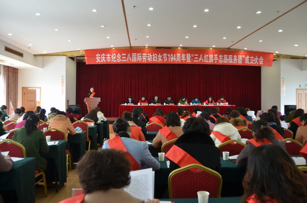 3月5日,安庆市纪念“三八”国际劳动妇女节104周年暨“三八红旗手志愿服务团”成立大会在皖源大酒店举行。来自全市各条战线的优秀妇女代表200多人欢聚一堂,共同庆祝属于自己的美好节日。安庆市委副书记陶方启、市人大副主任李玉萍、市政协副主席徐晓华等出席会议。大会由市妇联主席王芯茹主持。