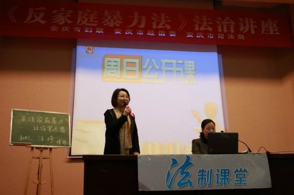 为大力宣传反家庭暴力法,扩大其影响,组织动员社会各界主动学、认真学,3月14日,市妇联联合市经信委、市司法局和市广播电视台在市图书馆举办《周日公开课》反家庭暴力法专题法治讲座。讲座邀请了安徽中天人律师事务所汪琦律师进行了讲解。汪律师从反家庭暴力法产生的背景、作用和意义、如何预防、人身安全保护令及公安机关的作用等8个方面进行了详细的阐述。与会的100多名有关企业职工参加了学习,并纷纷表示受益匪浅。该法治讲座全程录制,将于本周日18点在安庆广播电视台黄梅戏教育频道《周日公开课》栏目播出。市妇联还现场发放了《反家庭暴力法》、《预防家庭暴力 促进社会和谐》以及电话、网络诈骗防范常识和卫生健康保健知识宣传资料。